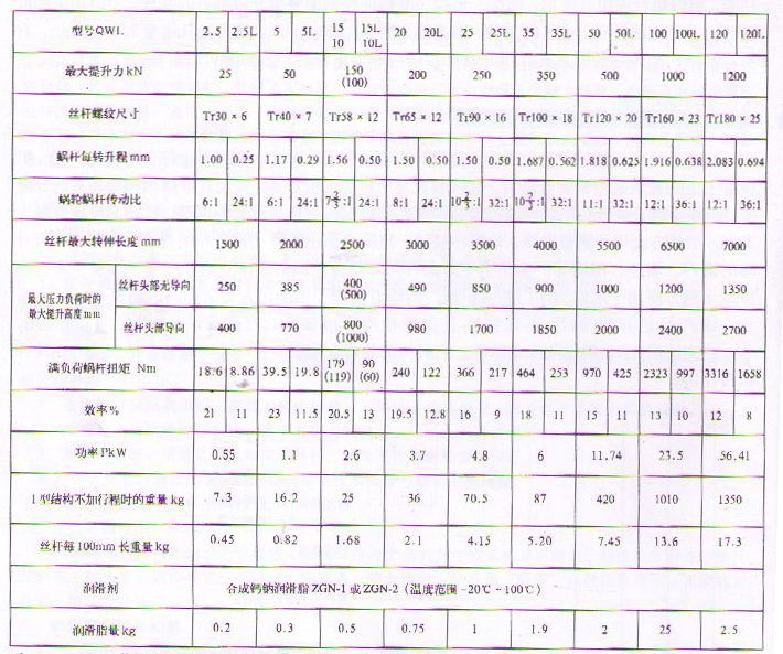 QWL蝸輪絲桿升降機是一種基礎起重部件,符合JB/T8809—1998(原JB/ZQ4391—86)標準。該產品可廣泛用于機械、冶金、建筑、化工、醫療、文化衛生等各個行業。承載能力2.5—120T。具有結構緊湊、體積小、重量輕、動力源廣泛、噪音小、安裝方便、使用靈活、功能多、配套形式多、可靠性高、使用壽命長等優點。具有提升、降落、推進、翻轉等功能,可以單臺或組合使用。QWL絲桿升降機能按一定程序準確地控制調整提升或推進的高度,可以用電動機或其它動力直接帶動,也可以手動。最高輸入轉速1500r/min,最大提升速度2.7m/min。有不同的結構型式和裝配方式,提升高度按用戶的要求制造。該裝置可以自鎖。